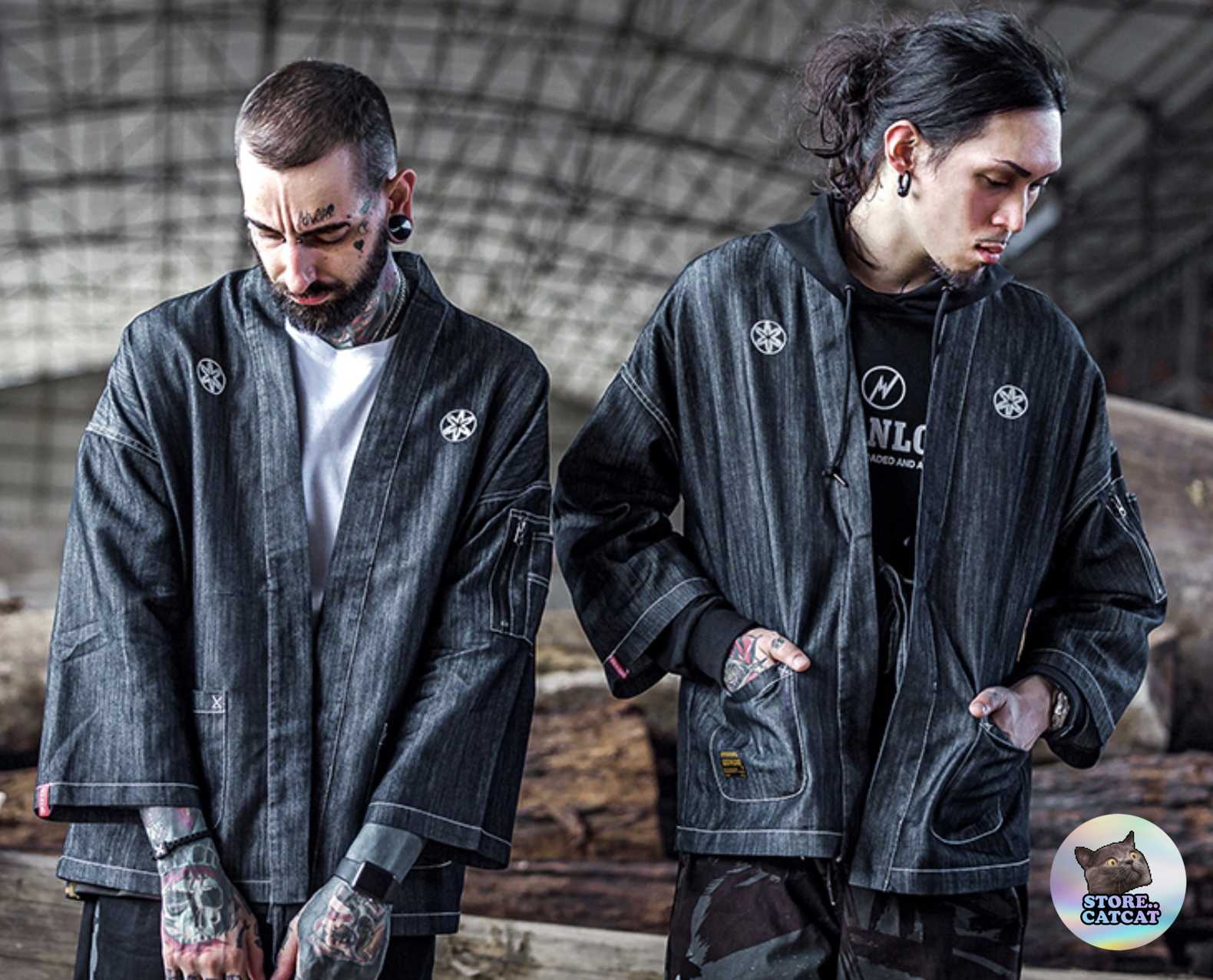 VINTAGE SAKURA LOGO DENIM KIMONO JACKET