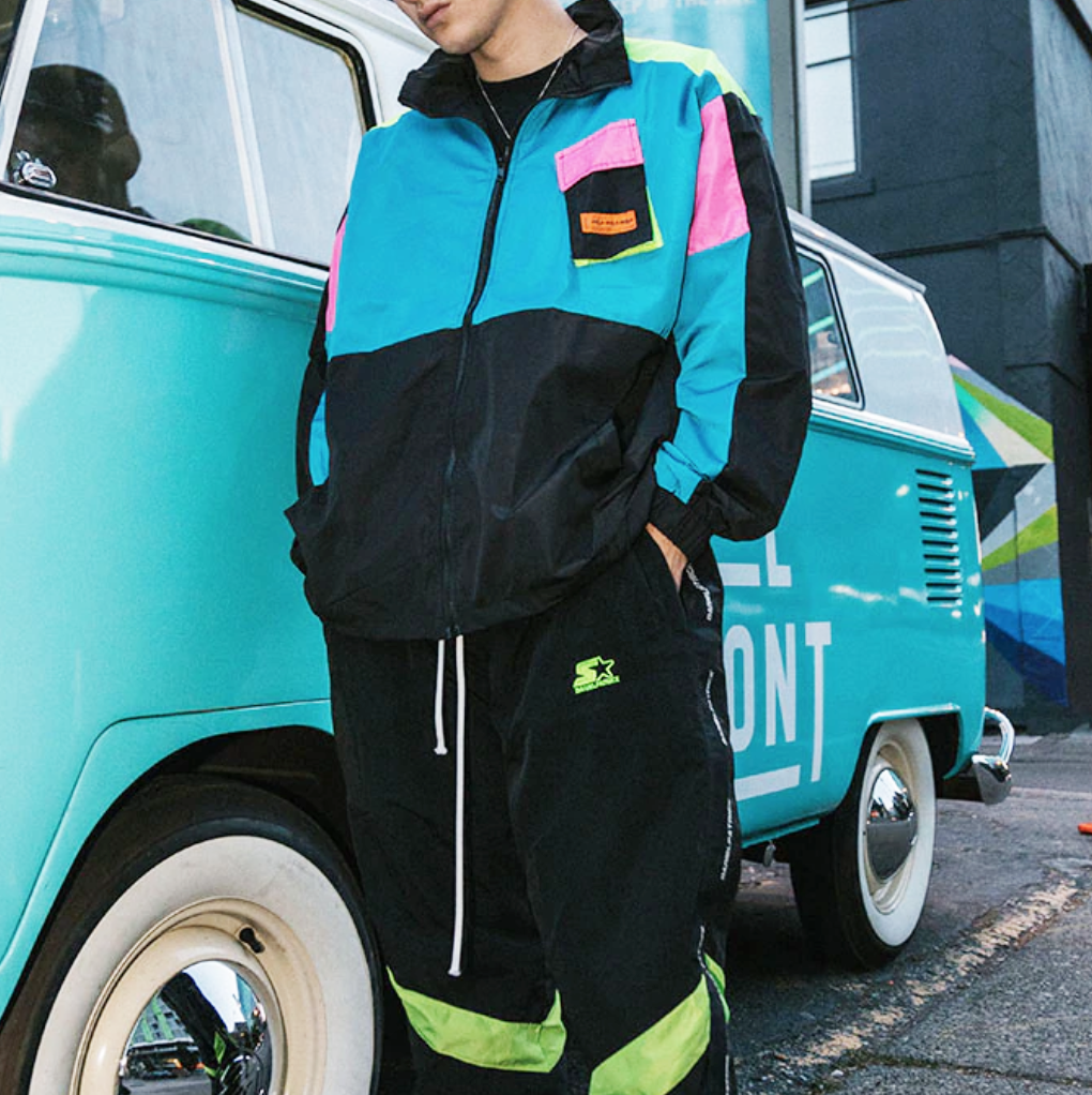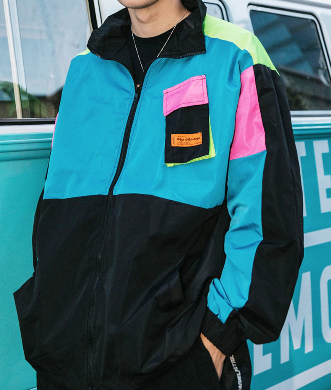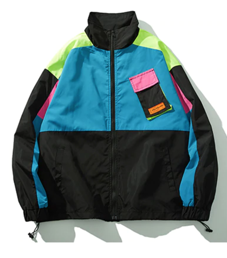80s COLOR BLOCK PATCH WORK WINDBREAKER JACKET