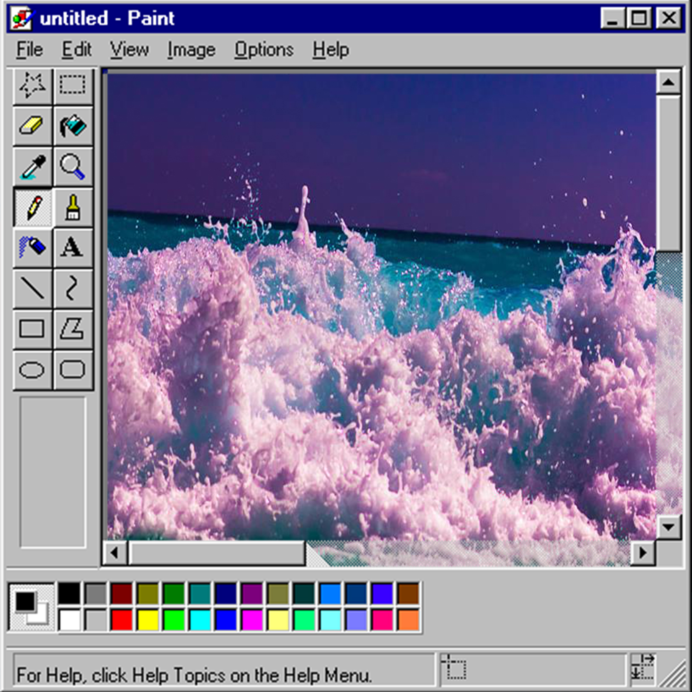 VAPORWAVE WINDOW 98 MICROSOFT PAINT PASTEL SEASHORE T SHIRT IN BLACK