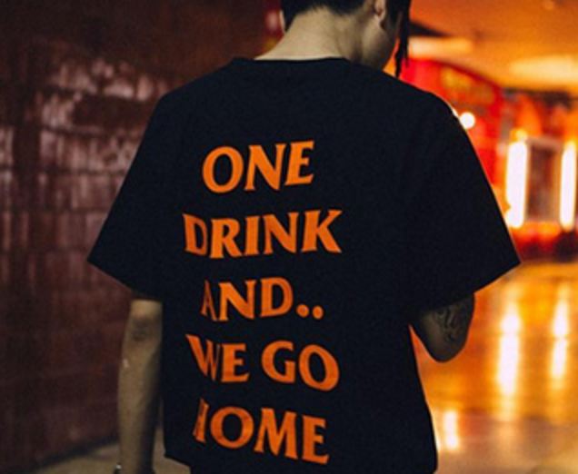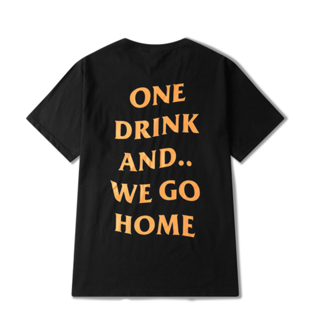 ONE DRINK AND WE GO HOME T SHIRT IN BLACK