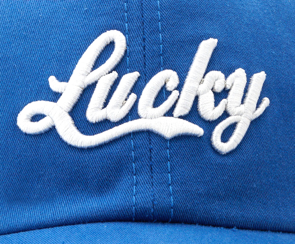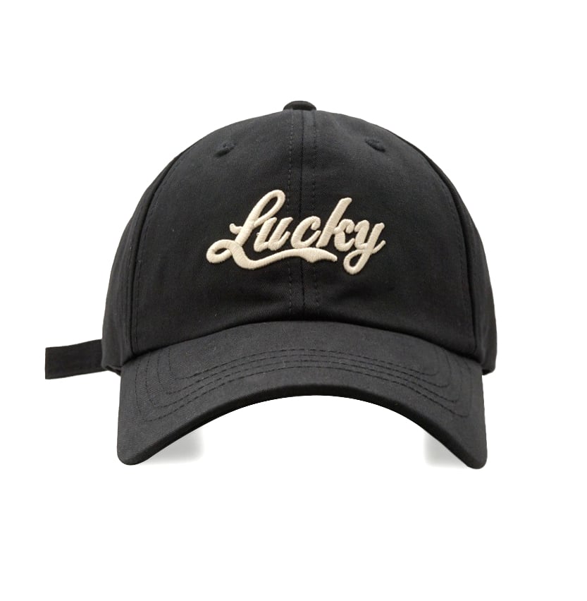Keep the good vibes rolling 🍀 Classic dad cap with elegant 'Lucky' script embroidery – available in fresh green, cool blue, and timeless black. Perfect everyday essential for that effortless lucky charm look!